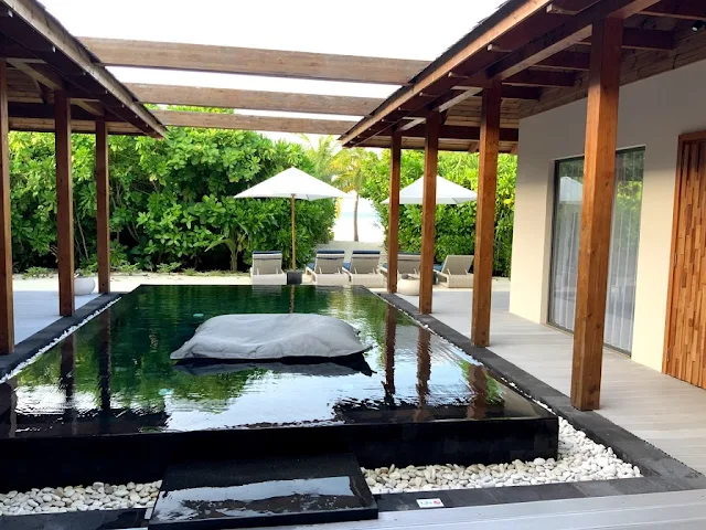We stayed in the beautiful and spacious Overwater Pool Villa Lagoon that is built on stilts above the crystal blue lagoon. Upon opening the door, we were welcomed with huge glass bottom floor, a full glass pane that gave us perfect view of private pool then through the ocean. Usually an entry level category gives you just what you need but our villa impressed us with what if offers: a huge walk-in room hence we need not see our clothes dangling on our view in the room. In between the glass bottom floor you will find two separate sliding doors, one to the fully equipped bathroom, and the other to the gorgeous bedroom that is fitted with a super comfortable bed, linen and mini bar. The balcony with pool gave us an ample amount of space to move around, relax, and loose all the unwanted energies.